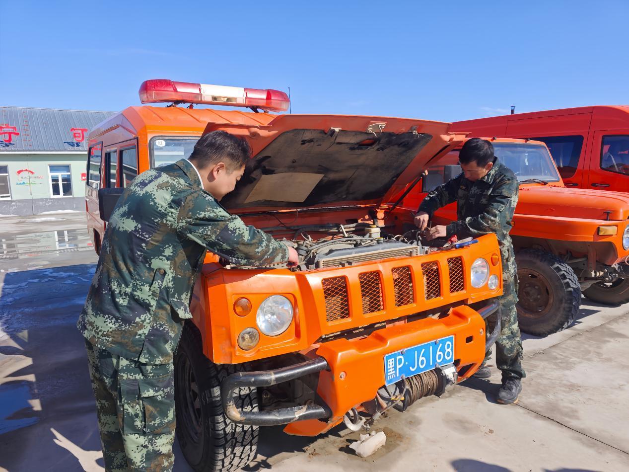 林場專業(yè)人員正在檢修防火車輛(李輝 攝)