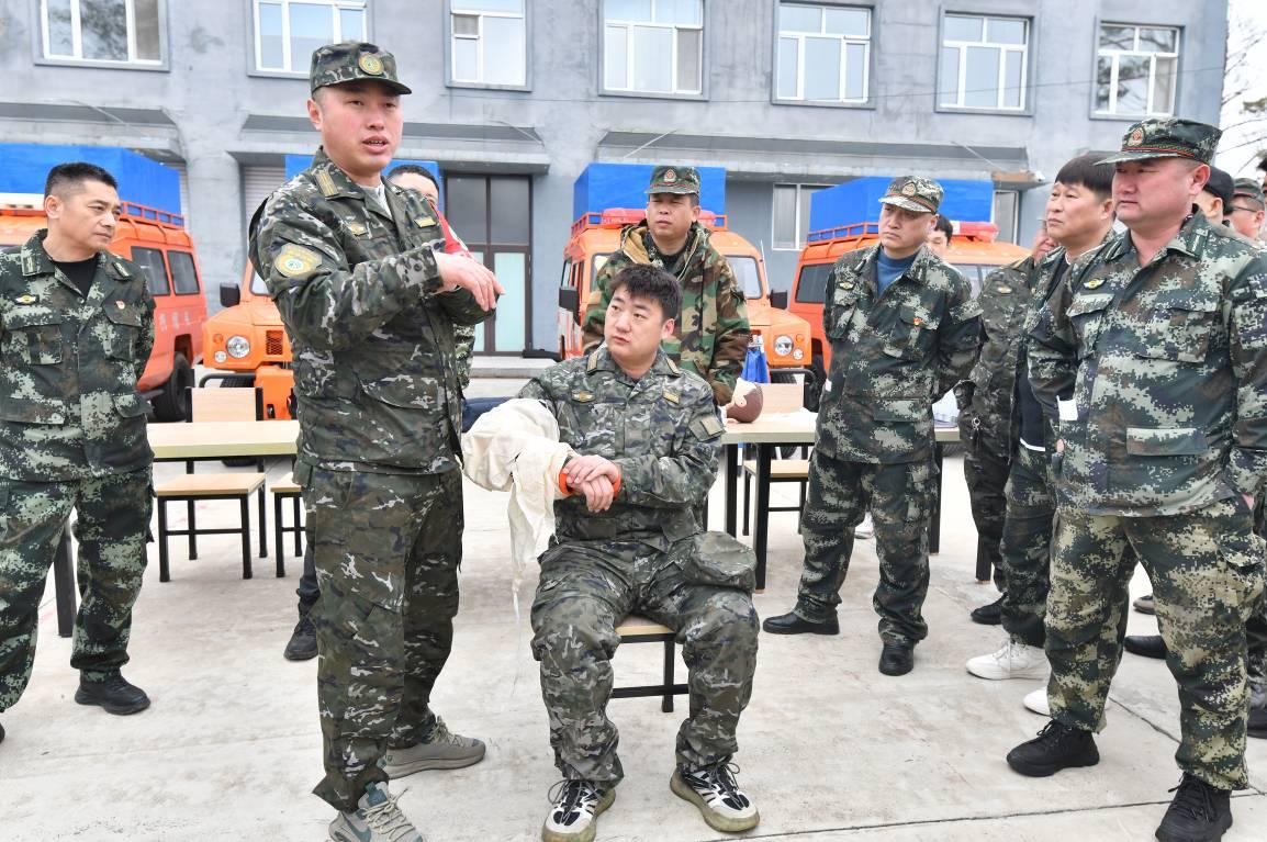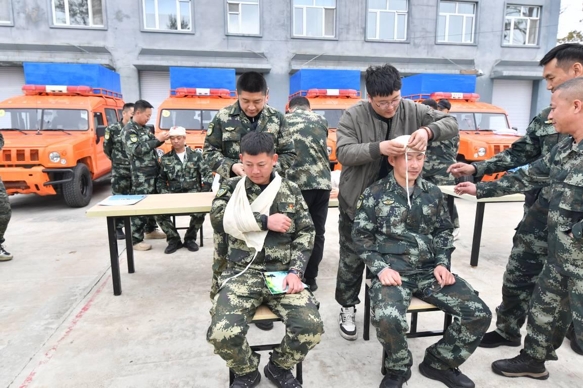 創(chuàng)傷包扎實操區(qū)同樣熱火朝天,參訓人員3人一組,互相充當“模擬傷員”,在醫(yī)護人員的一對一指導下,反復練習頭部、手部、腿部等不同部位的包扎方法?!爸霸诨饒鲇龅綉?zhàn)友受傷,只能憑著經(jīng)驗簡單處理,今天學的八字包扎法既牢固又省時間,下次再遇到類似情況就知道怎么規(guī)范操作了!”來自倭勒根林場的參訓隊員一邊給隊友包扎手臂,一邊笑著和身邊的人分享學習感受。一上午的實操訓練下來,不少隊員的手上都沾了不少醫(yī)用膠帶的膠漬,但每個人的臉上都寫滿了收獲的喜悅。