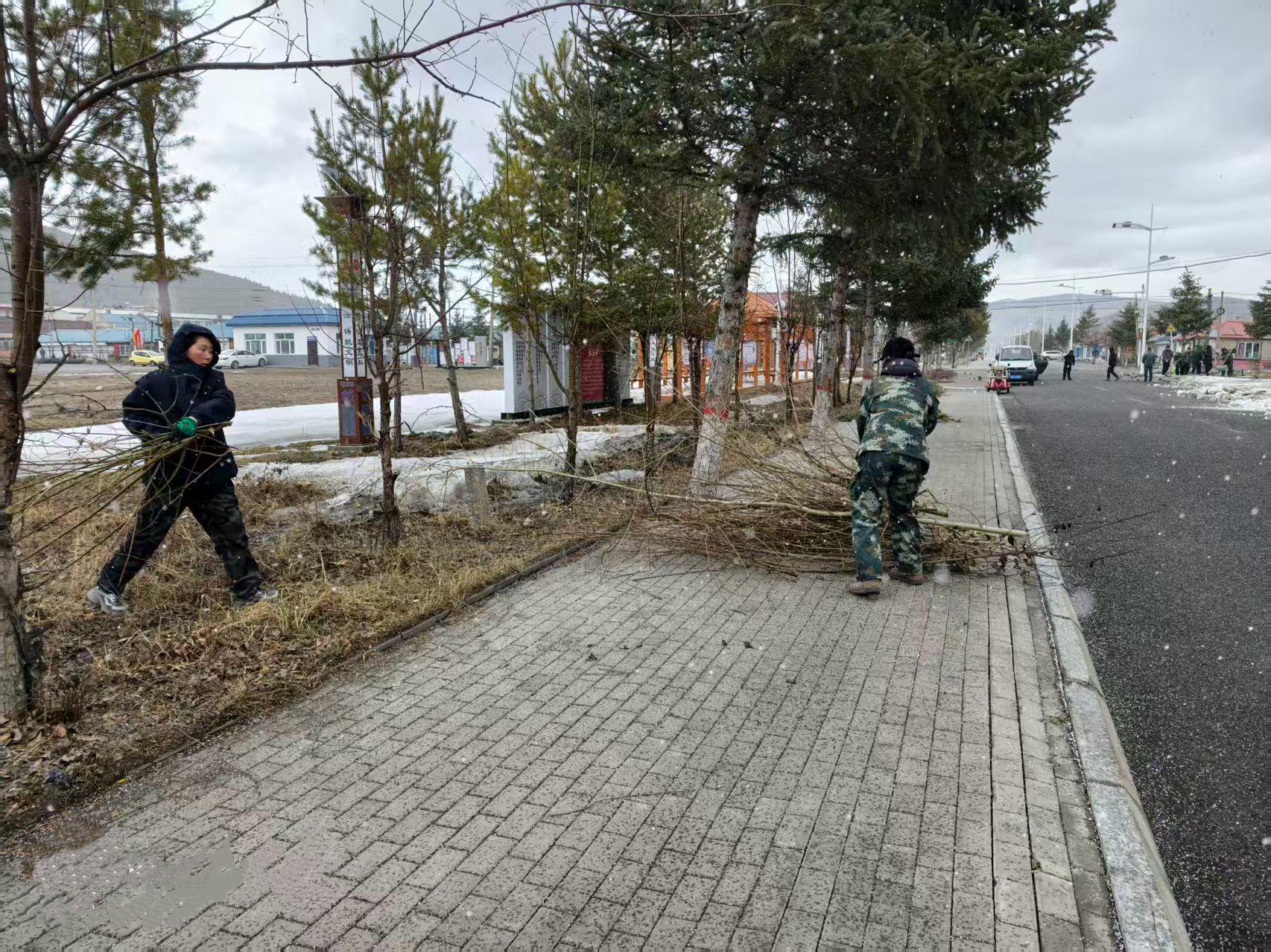 行動(dòng)中,林場全體干部職工20余人對分擔(dān)區(qū)內(nèi)裸露的白色垃圾、雜物雜草等進(jìn)行了全面的清理。寒風(fēng)里,義務(wù)勞動(dòng)的現(xiàn)場一片熱火朝天。同志們手持工具,分工協(xié)作、干勁十足。有的揮動(dòng)鐵鎬,刨開凍硬的積雪,一鎬一鑿鏗鏘有力;有的手持鏟鍬,將碎雪與雜物歸攏成堆,動(dòng)作麻利有序。在道路兩側(cè)的綠化帶內(nèi),割灌機(jī)轟鳴作響,清理雜亂枝杈,讓林木整齊舒展;手持耙子的同志俯身勞作,細(xì)細(xì)摟凈地面雜草枯葉,清出一片整潔林地。裝車現(xiàn)場更是繁忙,眾人合力將枯枝、雜物、積雪塊搬運(yùn)裝車,此次環(huán)境衛(wèi)生大清理,共清運(yùn)各類垃圾、積雪10余車。