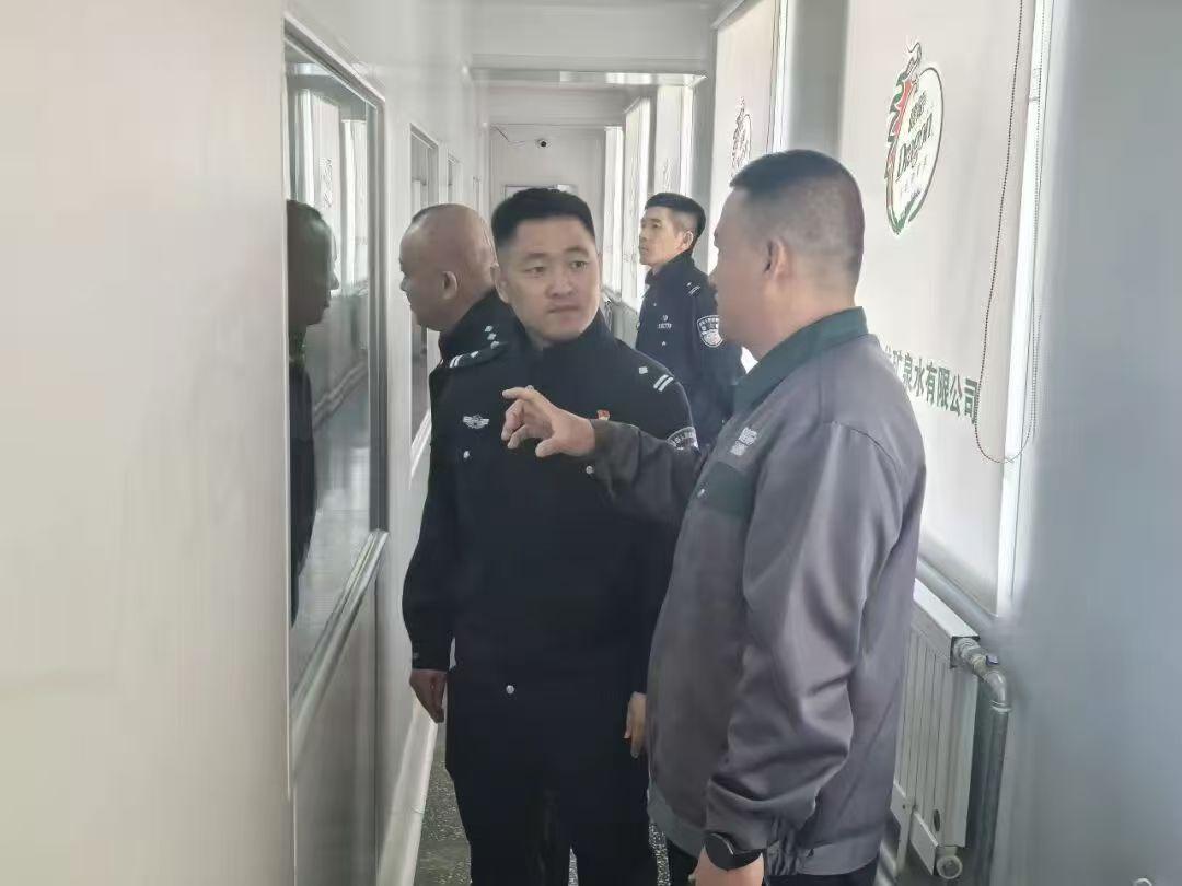 趙宇一行前往健龍礦泉水生產(chǎn)企業(yè),實地查看企業(yè)生產(chǎn)經(jīng)營、內(nèi)部安保、消防安全等工作落實情況,詳細了解企業(yè)日常運營中面臨的治安隱患、矛盾糾紛、安全管理等實際問題。藥泉派出所所長立足崗位職責,圍繞企業(yè)周邊治安防控、涉企警情處置、安全生產(chǎn)監(jiān)管、反詐宣傳、員工法治教育等工作,與企業(yè)負責人進行深入溝通交流,現(xiàn)場解答企業(yè)提出的各類政務(wù)咨詢、回應問題訴求。