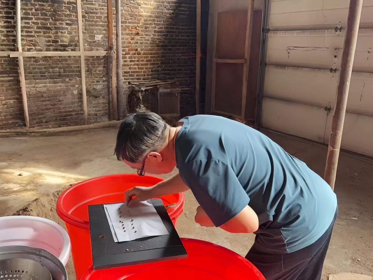 催芽過程中,技術員為保證催芽效果對種子進行嚴格篩選,嚴格遵循浸種、消毒、清洗、混沙、裝袋、入窖的精準操作流程,全程實時監(jiān)測溫度、濕度,定期檢查種子狀態(tài),使種子發(fā)芽時間大幅減少、發(fā)芽率顯著提升,并建立催芽全過程可追溯檔案,實現催芽管理從“經驗型”向“科學型”轉變。截至目前,已完成2300斤西伯利亞紅松種子催芽工作。